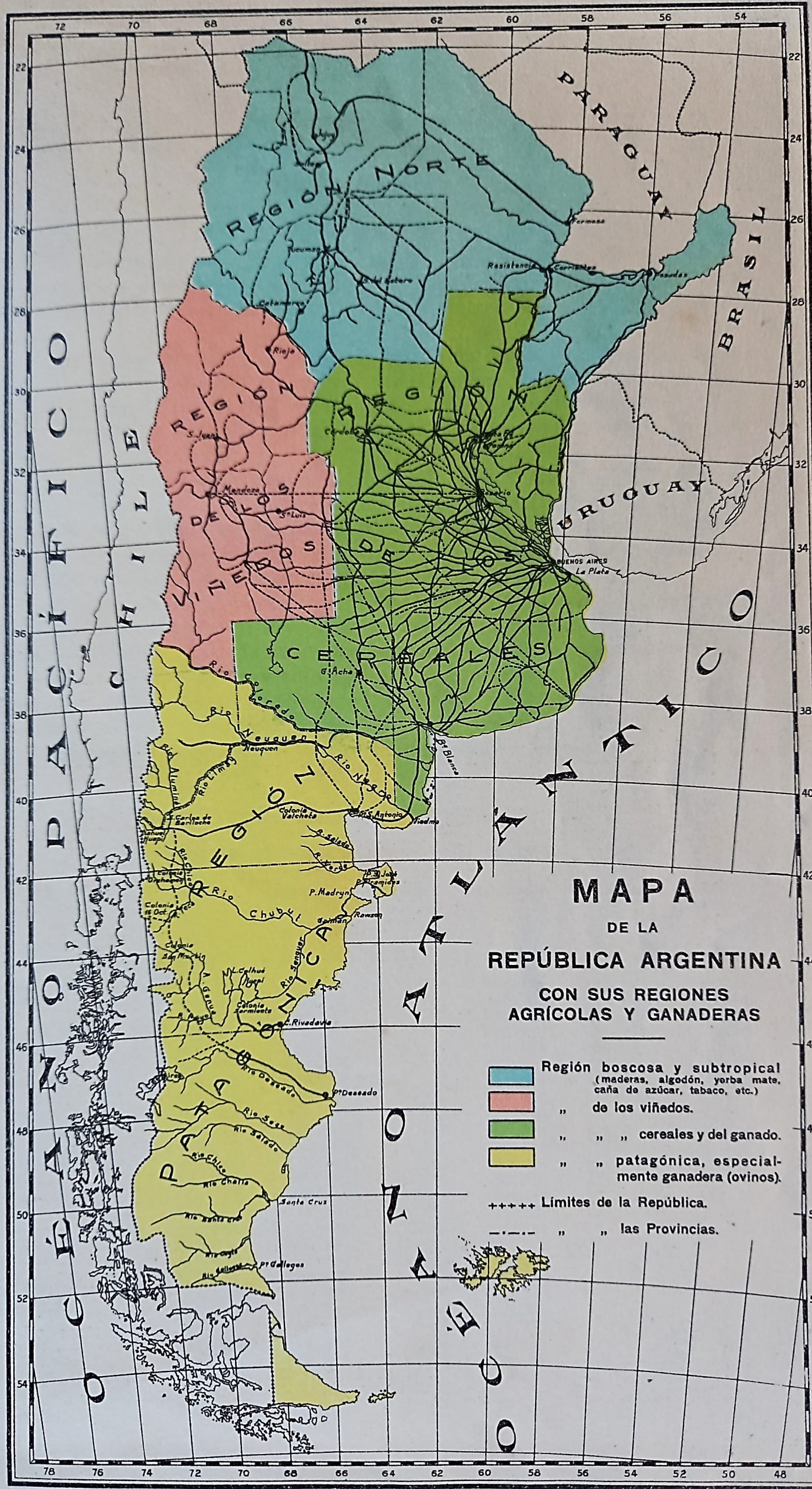 The Cartilla introduces information about the commercial situation of Argentina, whose economy, like that of the rest of the world, was greatly affected by the deep crisis of 1929. It accompanies abundant illustrations that, nevertheless, presents a prosperous and modern country with big expectations and full of opportunities based essentially on agricultural industry, the extraction of oil and other raw materials and commodities and commercial exchanges, which kept the country among the main economic powers in the world.