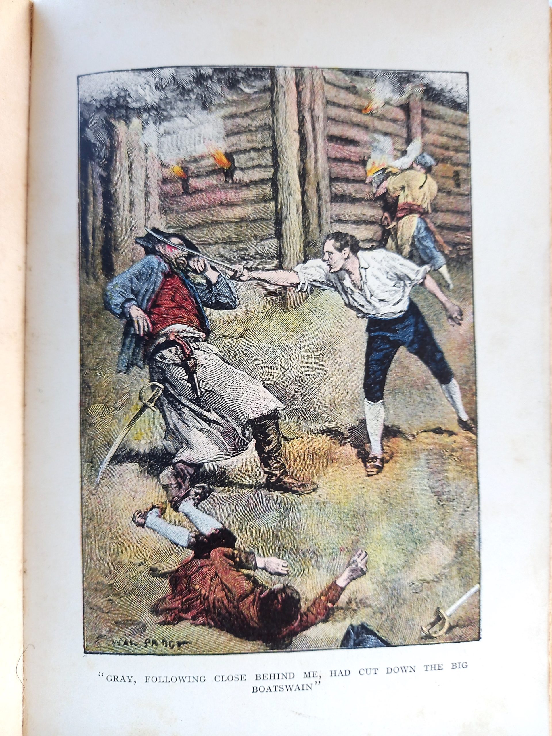 Robert Louis Stevenson (1850-1894) showed his Treasure Island in instalments in the magazine Young Folks, between October 1, 1881 and January 28, 1882, without anything predicting then the enormous success that the first edition in book format by Cassel & Company would have (London, 1883). The following year it was edited in the original English version by Bernhard Tauchnitz (Leipzig, 1884) and immediately translated into French as L´île du trésor by Pierre-Jules Hetzel (Paris, 1885). The first edition in the United States by Roberts Brothers (Boston, 1886), new British editions such as those of Chatto & Windus (London, 1887) or that of Collins Clear Type Press (London & Glasgow, 1890) will not be long in coming either, the latter already after the Spanish version published by Agustín Sáenz de Jubera (Madrid, 1889). The fateful year of the author’s death, his countrymen Thomas and Archibald Constable printed the first collection of his works for Longmans Green and Co. (Edinburgh, 1894), of course also with his Dr. Jekyll and Mr. Hyde from 1886, and in 1895 a large edition appeared on the initiative of the Roberts Brothers themselves with four black and white plates by F. T. Merrit. Already in the 20th century, the most nice editions are that of the prestigious Charles Scribner’s Sons (New York, 1902-1905), with illustrations by Walter Paget and that of Charles E. Merrit (New York, 1909), with introduction and notes by Franklin T. Baker. Cassel, the first publisher, also returned to market the work at that time with a profusely illustrated edition with 46 engravings and a map (London, 1906). Later, until reaching the first quarter of the century, must be mentioned those now centenaries of Scribner’s from 1911, with illustrations by Newell Covers Wyeth, 1917-1918 and 1923-1924 with four colour plates and 43 engravings by Plaget. Finally, the careful reproduction of the first edition of Cassel from 1883 by Boni & Liveright Modern Library (New York, 1917) and the very exquisite one by John C. Winston (Philadelphia, 1924) with introduction and notes by Gilbert Sykes Blakely, and with four plates in colour and many illustrations by Frank Godwin enter in this time periode. In 1908 the first film screening directed by John Stuart Blackton was presented. The film produced by Metro Goldwyn Mayer was released in 1934.