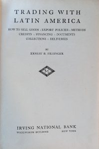 The interest and influence of Irving National Bank of New York is deduced from the fact of having being editor of what were called Pamphlets, which regularly addressed different economic and commercial matters. For its part, Trading with Latin America highlighted the importance that the US gave to the subcontinent, especially countries like Argentina, Mexico and Brazil. The success of the first edition of 1917 justified this second edition of 1919, with some changes both inside and on the cover. In these years the bank had its headquarters in the Woolworth Building, at that time the tallest skyscraper in the world, a project by architect Cass Gilbert (1859-1934).